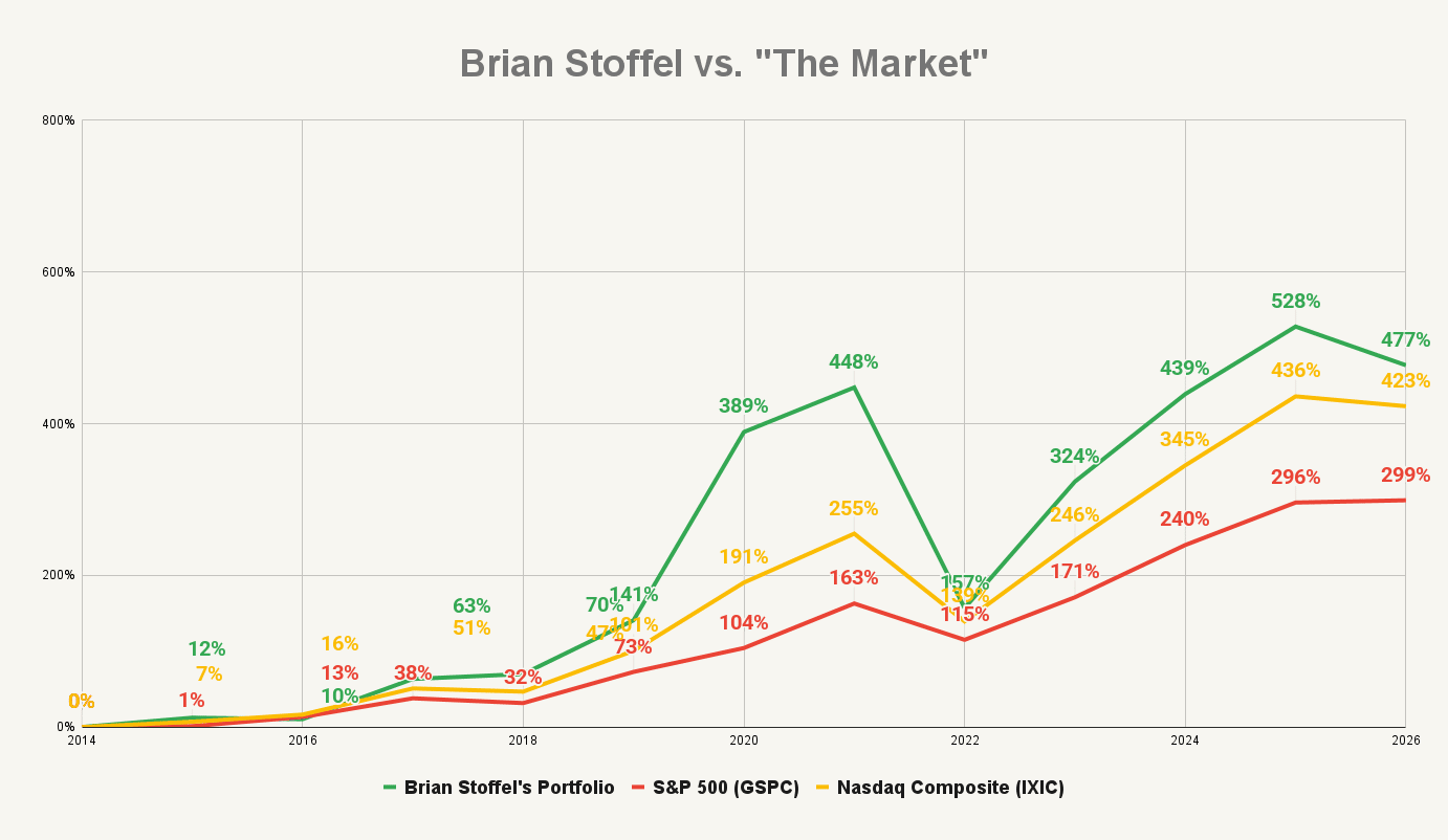 Here's why this matters: below, I've attached my ACTUAL results over that time frame, along with the S&P 500 and Nasdaq Composite index.