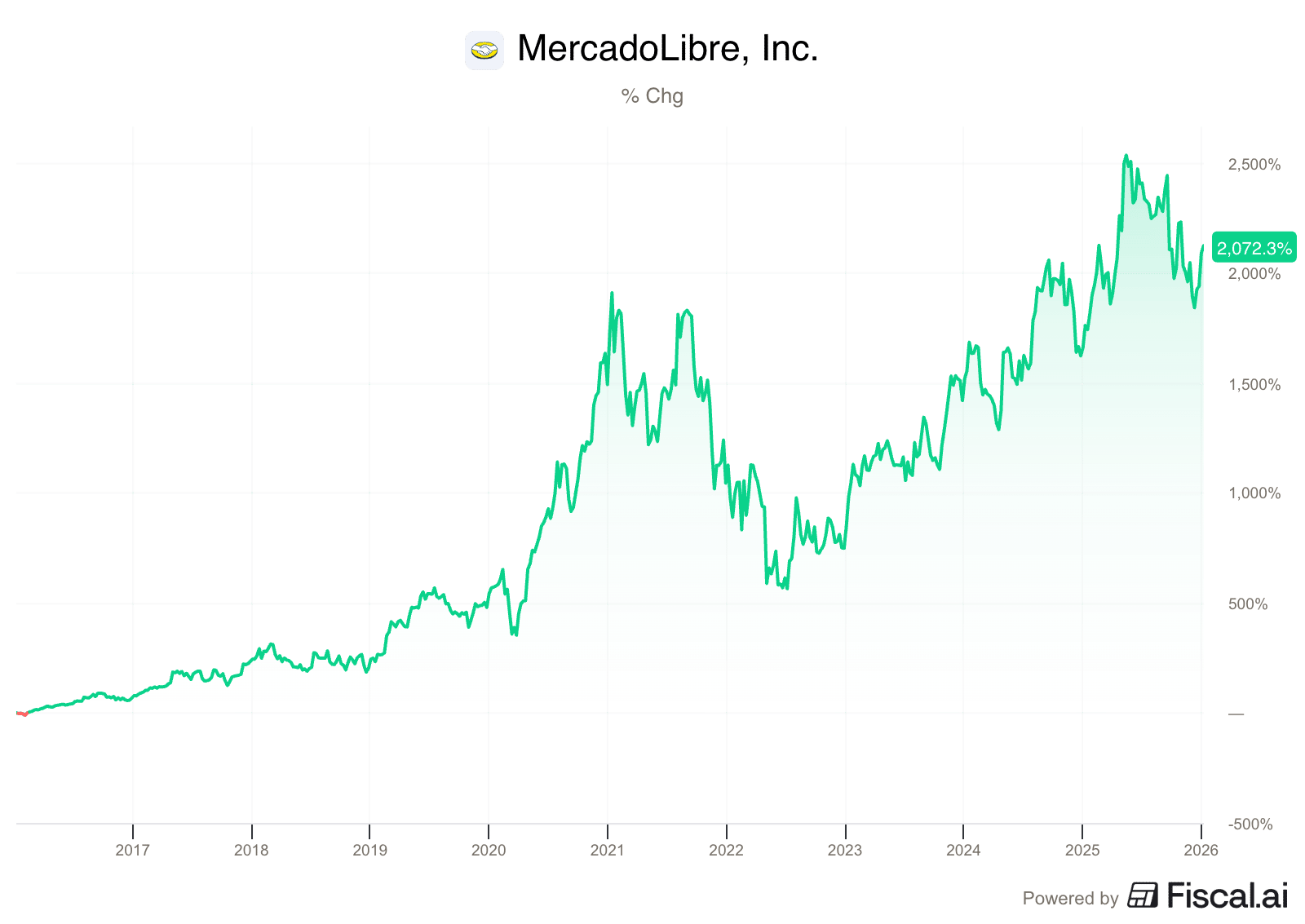 But here's the key: we've never considered Mercadolibre to be wildly overvalued at any point during this run.