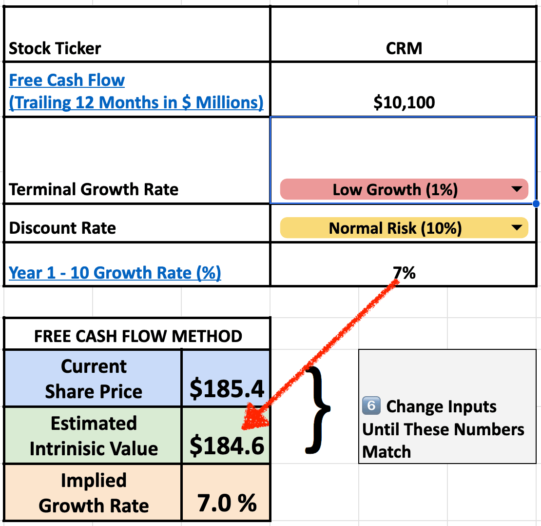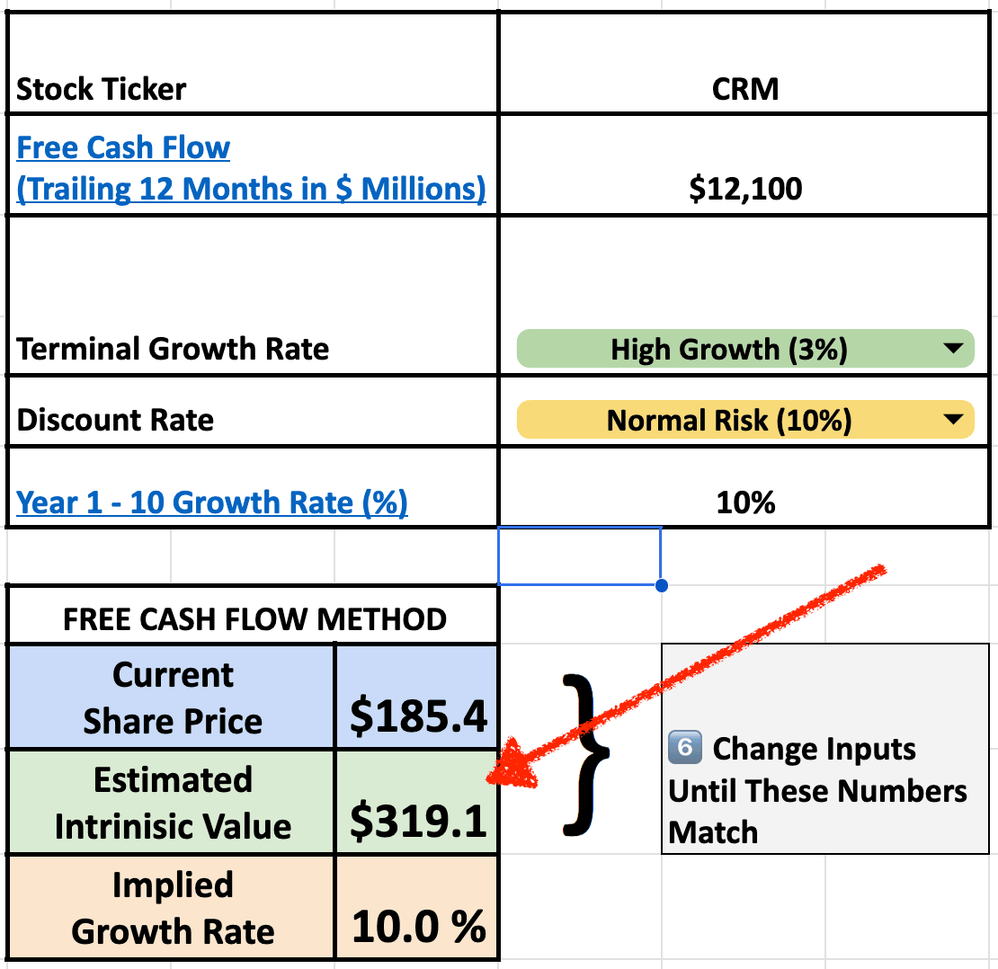 And here's why that matters: two years ago, it would have been completely reasonable to assume that Salesforce could grow revenue at 10% annually over the next decade, with a 3% terminal growth rate. Assuming stable 30% FCF margins, that would make it a $319 stock today -- criminally undervalued.
